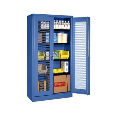 PARENT METAL Heavy-Duty Visual Cabinets have 16-ga. expanded metal doors that permit light and air flow and quick visual inspection of contents. Secure all-welded construction. 18-ga. shelves adjust on 2" centers. Doors swing on full-height piano hinges. Three-point locking device with plated lock bars. Dual handlesone fixed, one locking with 2 keys. Ships set up and ready to use. Durable powder coat finish. Read More..