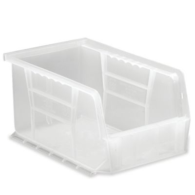 Highly durable injection-molded plastic bins have an extra-wide stacking ledge to ensure stability. Organize your parts with QUANTUM Ultra ClearView Poly Bins. Clear bins allow you to quickly check inventory. Molded-in front, back, and side grips for easier handling. Front grip includes a large label slot for ID labels, etc. Reinforcing ribs add strength. Resistant to rust and corrosion. Bins resist extreme cold and are autoclavable up to 250F. Optional windows increase available capacity. Optional dividers organize your smallest parts. Read More..