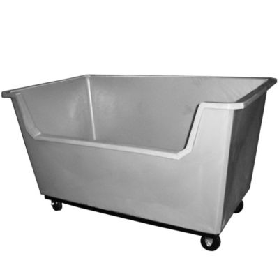 Ergonomic hopper front provides easier access to contents. Molded polyethylene body is supported by an all-welded angle-iron dolly. Dolly is bolted directly to body. 5" casters are welded to dolly in a corner pattern for greater maneuverability. Read More..
