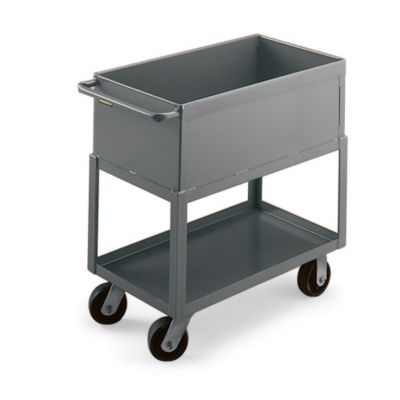 Spacious 12" deep box offers secure cargo confinement. AKRO-MILS Welded Box Trucks are built for tough use. All-welded construction. 13-gauge steel shelves. Lower shelf includes a 1 1/2" lip. Casters (2 rigid, 2 swivel) include roller bearings. Durable gray powder coat finish. Read More..