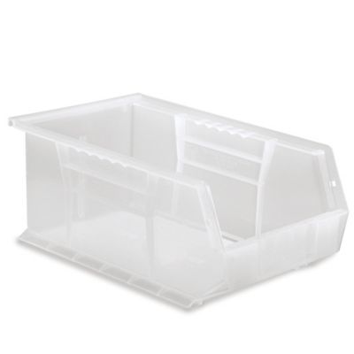 Highly durable injection-molded plastic bins have an extra-wide stacking ledge to ensure stability. Organize your parts with QUANTUM Ultra ClearView Poly Bins. Clear bins allow you to quickly check inventory. Molded-in front, back, and side grips for easier handling. Front grip includes a large label slot for ID labels, etc. Reinforcing ribs add strength. Resistant to rust and corrosion. Bins resist extreme cold and are autoclavable up to 250F. Optional windows increase available capacity. Optional dividers organize your smallest parts. Read More..