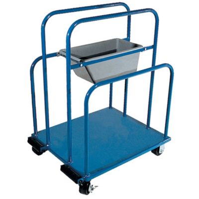 VESTIL Panel Cart holds large flat material as well as small tools and supplies. Strong steel unit holds paneling, plywood, doors, lumber and any other large sheets. Features a removable plastic tote that lets you carry your tools right to the jobsite. Also includes rollers on one end for easy loading and unloading. Two rigid and two swivel casters. Blue powder coat finish. Read More..
