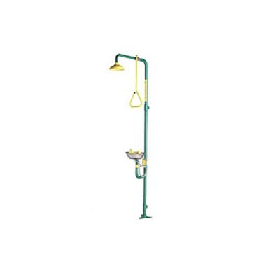 SPEAKMAN Combination Drench Shower and Eyewash offers both full-body coverage and eye flush in one location. Shower is activated by pulling high-visibility yellow handle. Eyewash operates via push handle. Also includes: plastic shower head, dual aerated spray outlets, flip-top dust covers, and full flow stay-open ball valve. 1 1/4" NPT inlet. 20 GPM at 30 PSI. Meets ANSI Z358.1. Ship assembled. Read More..