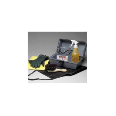 PRINZING Battery Cleaning and Charging Safety Kit helps minimize the risk of employee acid burns or shocks while charging batteries. Includes: (1) pair of large unsupported neoprene over natural rubber gloves; (1) pair of clear chemical goggles with indirect ventilation; (1) 45x35" black rubber apron; (1) 8" synthetic brush; (2) 9 1/4x14 1/2" sorbent pads; (1) quart neutralizing and cleaning agent with trigger sprayer; (1) laminated instruction card. 7 1/2"Wx8"Dx14"H tote box. Read More..