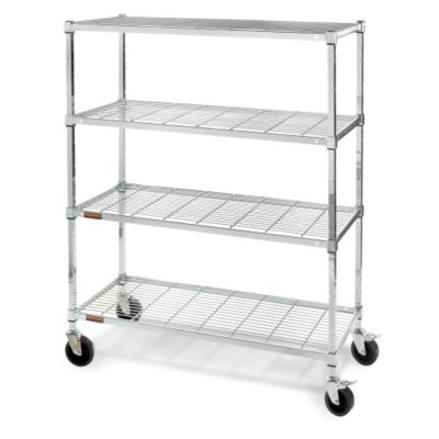 RELIUS SOLUTIONS Square-Post Wire Shelf Trucks with Smart Casters feature unique 5" polyurethane aoeSmarta casters that allow greater maneuverability and exact cart placement. Simple foot-operated mechanism locks swivel caster into one of four rigid positions for maximum cart control in aisles, around work areas, or in tight spots. Open-wire shelf design provides better inventory checks and air circulation. Open sides increases productivity by providing access to items from all sides. Shelves adjust in 2" increments. Durable Plating Plus finish. NSF listed. Read More..