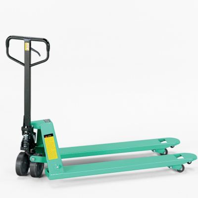 Backed by a 3-year pump warranty. This WESCO Premium Pallet truck allows you to move pallets with just one hand. Safety loop handle has 3-position fingertip controllower, raise, and neutral. Other features include: reinforced forks and oilless bearings. Read More..