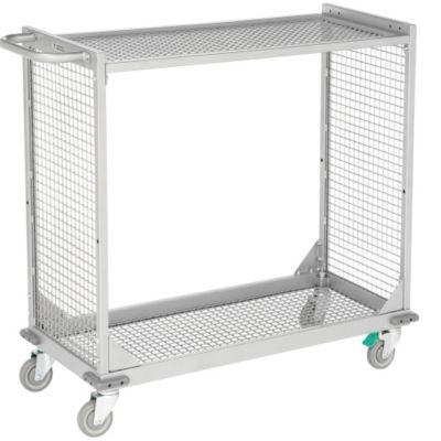 IRSG Wire Utility Cart features open wire end panels to keep inventory in place. Offers maximum visibility for better inventory control. Strong steel construction with durable powder coat finish. Rolls on 5" polyurethane swivel castersone directional locking. Corner bumpers protect walls and doors from damage. Welded steel push handle. Read More..