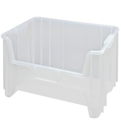 Wide hopper-style opening provides access to larger parts and materials. QUANTUM Giant Stacking ClearView Bins are perfect for storing supplies, parts, and tools. Designed specifically for stacking, place up to six bins on top of one another to create a compact storage system. Injection-molded high-density polyethylene bins resist rust and corrosion, and are unaffected by most chemicals. Quality features include: reinforcing side ribs that enhance rigidity and large easy-to-grab handles. Optional window increases storage capacity. Read More..