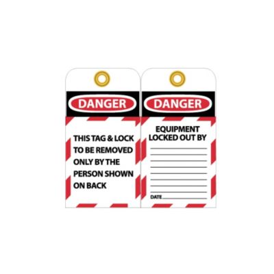 NMC Danger Tag-Out Lockout Tags convey lockout directions and safety information. Prevents accidental or unexpected startup or release of stored energy when working on equipment and machinery. Include area for writing. .015 mil thick vinyl will not rip. Sold in packs of 10. Read More..