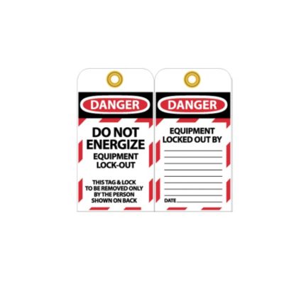 NMC Danger Energy Lockout Tags convey lockout directions and safety information. Prevents accidental or unexpected startup or release of stored energy when working on equipment and machinery. Include lined area for writing. .015 mil thick vinyl will not rip. Sold in packs of 10. Read More..
