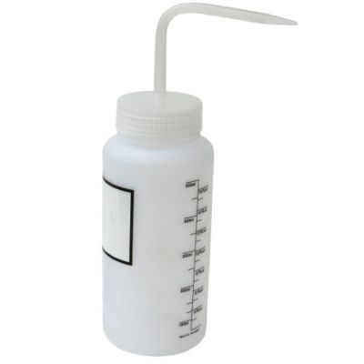 RELIUS SOLUTIONS Wide-Mouth Graduated Wash Bottles have a large opening for easy filling. Include a white label area that can be written on with a marker to clearly identify contents. Graduated in milliliters and ounces for quick content measurement. Translucent bottles have colored caps. Bottles are low density polyethylene (LDPE); caps are polypropylene (PP). Materials have been approved to meet FDA standards. Read More..